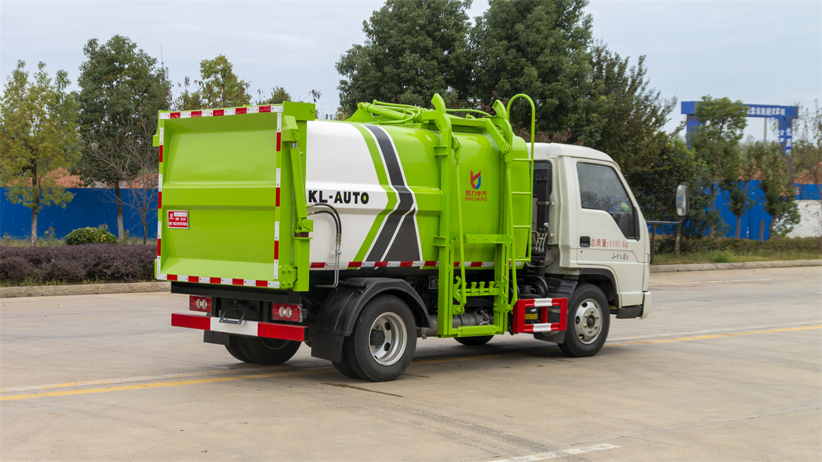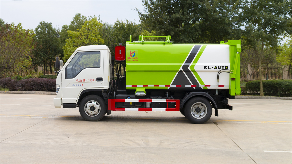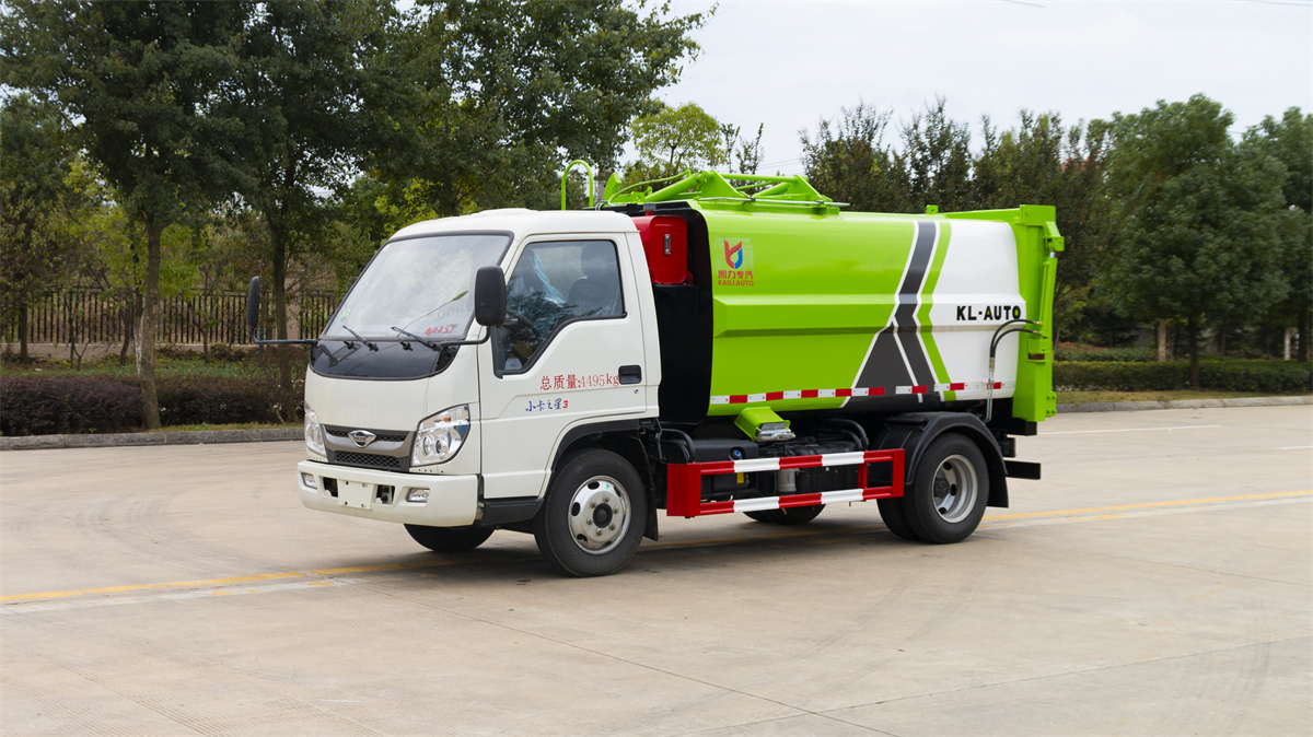 5方掛桶垃圾車-福田小卡3藍牌側裝壓縮掛桶垃圾車廠家