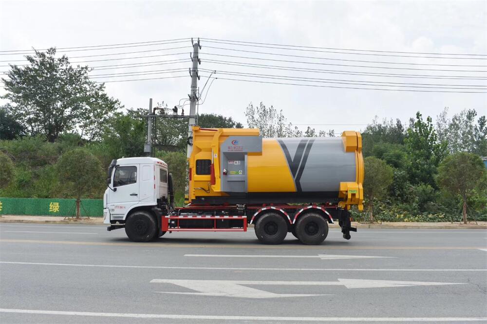 勾臂式垃圾車(車廂可卸式垃圾車)介紹: 車廂可卸式垃圾車又叫拉臂式垃圾車,是一種采用高新設計可伸縮的鉤臂,實現垃圾廂的二次吊裝,自吊上放下,可自行傾倒垃圾的環衛設備。 拉臂式垃圾車結構簡單,操作穩定方便,裝卸效率高,機械化程度高,節省人力。鉤臂垃圾車一車可帶多個垃圾廂,在裝卸的運輸過程中可有效地避免二次污染。 拉臂垃圾車采用高新設計可擺動的鉤臂,垃圾箱由框架、開啟油缸、滑輪、后門和若干加強框架與鋼板焊接而成。調換貨廂快捷方便,貨廂上帶蓋(倒垃圾時可翻開),鉤臂垃圾車垃圾廂體可選用碳鋼、不銹鋼材質、內部采取環氧樹脂防腐處理,改裝部分與原車底盤為可分離式,維修方便且保持了原車的機動性及行駛性能。
