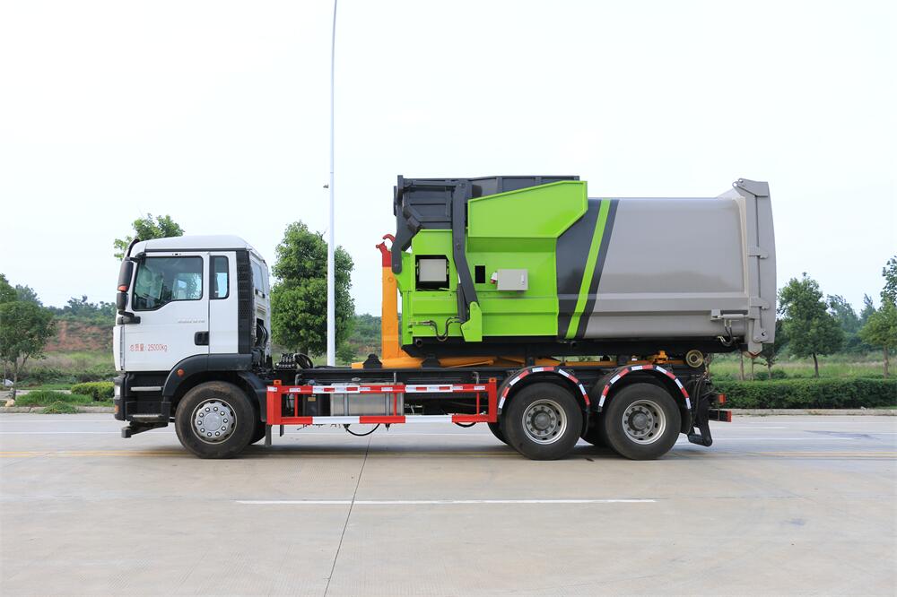 勾臂式垃圾車又稱拉臂式垃圾車、車廂可卸式垃圾車:采用全液壓**操作系統(tǒng),垃圾廂與勾臂車可徹底分離,具有操作簡(jiǎn)便、使用穩(wěn)定效率高、密封性能好、傾倒方便等優(yōu)點(diǎn),實(shí)現(xiàn)一臺(tái)車與多個(gè)垃圾廂聯(lián)合作業(yè),充分提高車輛的運(yùn)輸能力。主要適用于市政環(huán)衛(wèi)、物業(yè)管理、大型廠、工礦等各種場(chǎng)所收集、運(yùn)載各種垃圾。