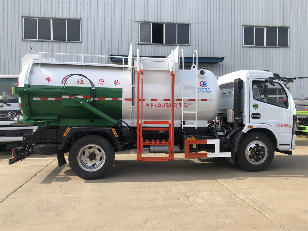 餐廚垃圾車或者餐余垃圾車、泔水車,是用于收集和運輸生活垃圾、食品垃圾(泔水)及城市淤泥的專用車輛。具有自裝、自卸、固液分離、壓縮垃圾自動化程度高、密封性好、操作簡便、無污水泄露和異味的散發等特點。