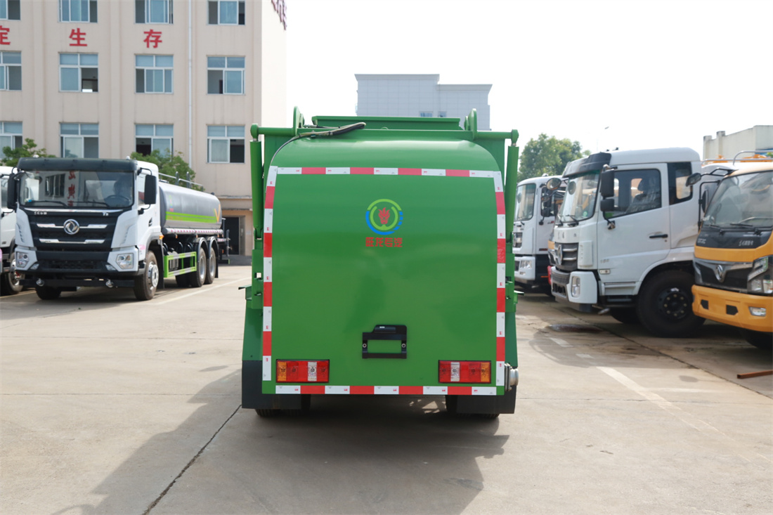 上裝配置:罐體容積4m3,配備120L/240L掛桶提升翻轉機構,液壓系統,后蓋液壓鎖緊開啟,罐體可以舉升自卸,尾部帶自流閥;用于運輸液態垃圾,其特點操作簡單,密封性好,無泄漏,無異味;可選裝固液分離功能,推板擠壓功能,常用于餐館的垃圾轉運處理。