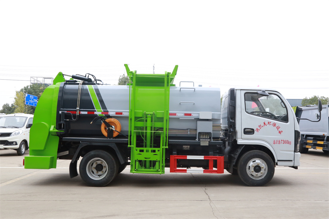 上裝配置:罐體容積6m3,配備120L/240L掛桶提升翻轉機構,液壓系統(tǒng),后蓋液壓鎖緊開啟,罐體可以舉升自卸,尾部帶自流閥;用于運輸液態(tài)垃圾,其特點操作簡單,密封性好,無泄漏,無異味;可選裝固液分離功能,推板擠壓功能,常用于餐館的垃圾轉運處理。