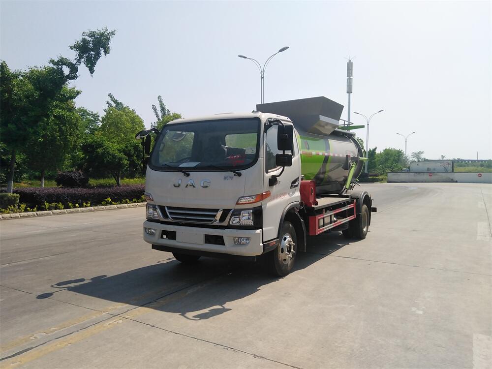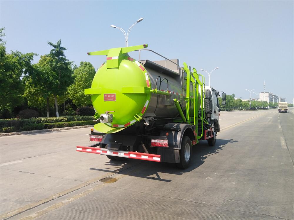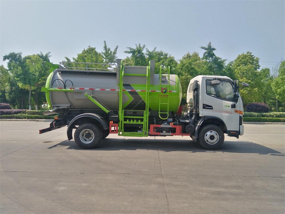 上裝配置:罐體容積8m3,配備120L/240L掛桶提升翻轉(zhuǎn)機(jī)構(gòu),液壓系統(tǒng),后蓋液壓鎖緊開啟,罐體可以舉升自卸,尾部帶自流閥;用于運(yùn)輸液態(tài)垃圾,其特點(diǎn)操作簡(jiǎn)單,密封性好,無(wú)泄漏,無(wú)異味;可選裝固液分離功能,推板擠壓功能,常用于餐館的垃圾轉(zhuǎn)運(yùn)處理。