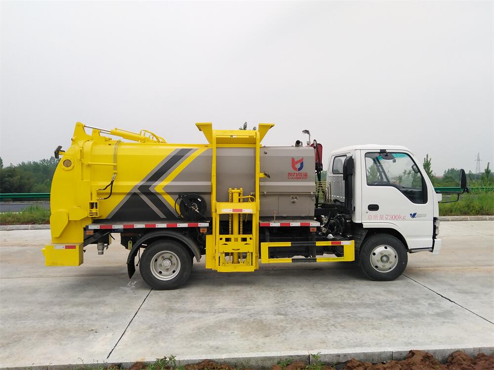 上裝配置:罐體容積6m3,配備120L/240L掛桶提升翻轉(zhuǎn)機構(gòu),液壓系統(tǒng),后蓋液壓鎖緊開啟,罐體可以舉升自卸,尾部帶自流閥;用于運輸液態(tài)垃圾,其特點操作簡單,密封性好,無泄漏,無異味;可選裝固液分離功能,推板擠壓功能,常用于餐館的垃圾轉(zhuǎn)運處理。