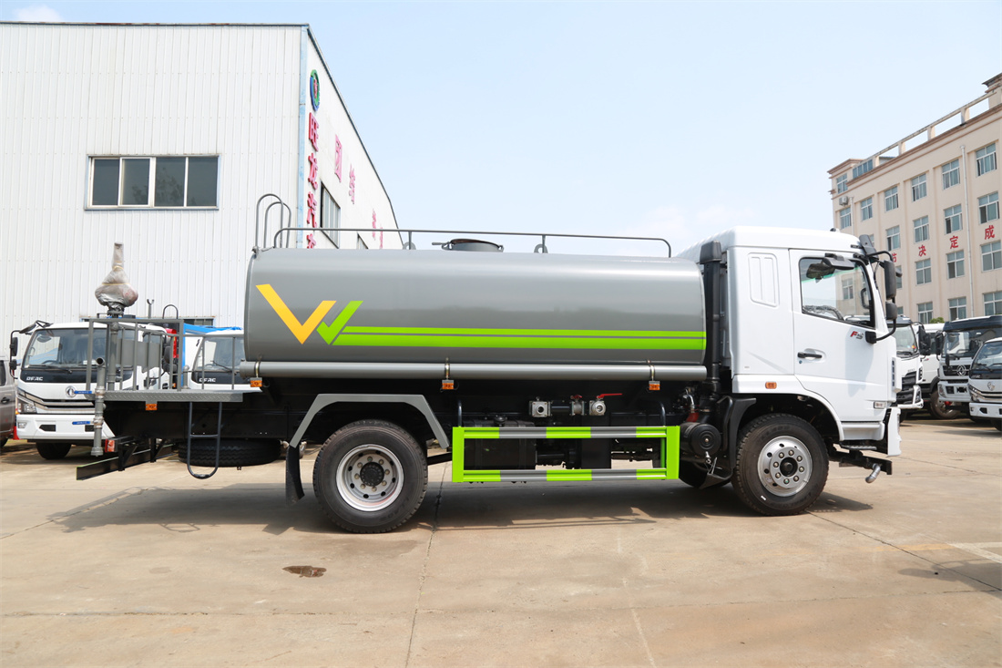灑水車前裝有鴨形噴嘴或圓頭沖嘴,后面裝有圓柱開灑水噴嘴或蓮蓬頭噴嘴,后部有一工作平臺,裝配有水炮。后部還可裝8個噴嘴(選裝)。