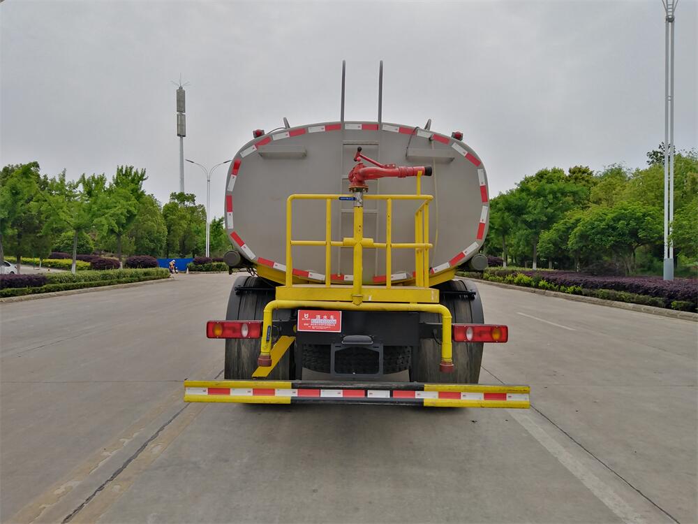灑水車前裝有鴨形噴嘴或圓頭沖嘴,后面裝有圓柱開灑水噴嘴或蓮蓬頭噴嘴,后部有一工作平臺(tái),裝配有水炮。后部還可裝8個(gè)噴嘴(選裝)。