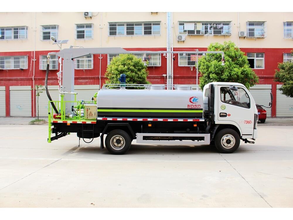 東風(fēng)小多利卡抑塵固化劑噴灑車上裝配置:罐體為5立方圓形罐,罐體內(nèi)部做防腐,帶加熱功能,前沖、后灑、側(cè)噴、高炮,抑塵噴灑桿(帶旋轉(zhuǎn)伸縮功能)。東風(fēng)小多利卡抑塵固化劑噴灑車噴灑桿離地3.5-5米 ,后部平臺(tái)帶8KW副發(fā)電機(jī)組,罐體內(nèi)部加兩個(gè)1.5KW電動(dòng)馬達(dá)(帶攪拌功能)罐體噴漆上白下藍(lán),平臺(tái)和噴灑桿藍(lán)色。遙控操作噴灑桿上下左右旋轉(zhuǎn),國內(nèi)知名品牌回轉(zhuǎn)支撐,大品牌油缸。