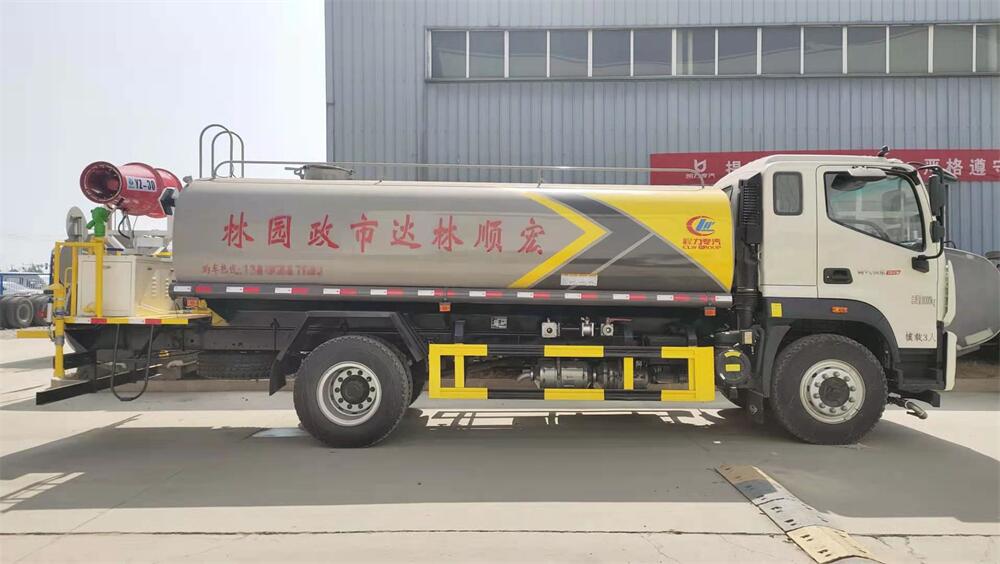 上裝配置:罐體容積 12立方,風送式霧炮機組30米,40米選擇,罐體采用國標Q235碳鋼材質,罐體厚度4MM,前后封頭5MM加厚型,罐體內雙層隔板具有防波蕩作用,以減輕汽車行駛時罐內液體沖擊;灑水車整車及外形尺寸嚴格按照**機動車公告制作而成;裝配大功率專用灑水泵,前沖、后灑、側噴、后平臺帶綠化灑水炮,灑水炮可全方位旋轉,可連續調成直沖狀、大雨、小雨、毛毛雨;配消防接口,自流閥,濾網,帶自吸自排功能。前封頭帶水位計,后平臺主管路帶1寸澆花接口,后爬梯,帶1個消防接頭,帶1個自流閥,1個過濾裝置,其余標配。