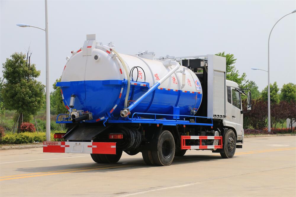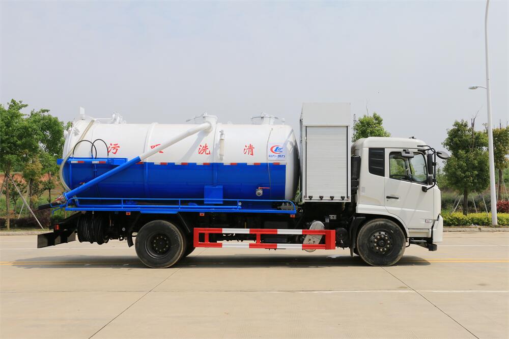 15方清洗吸污車-東風天錦15方10+5清洗吸污兩用車-帶副發動機 圓罐