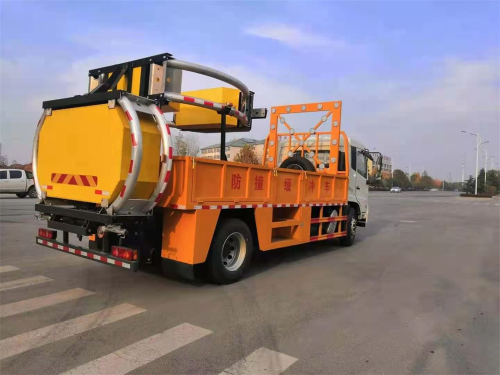 防撞緩沖車主要用于高速公路施工,隧道施工,公路施工等工程時,**大限度的降低了施工車輛、養(yǎng)護人員和事故處理的交**的安全風險問題。該車專用裝置為導向架和防撞緩沖墊等組成,可在臨時性車道封閉的路段給養(yǎng)路工人及設(shè)備提供全面的被動安裝防護:通過防撞包的變形均勻逐漸的緩消碰撞的動能,對施工人員及設(shè)備進行有效的保護,同時**大限度地保護撞擊車輛內(nèi)人員的安全。