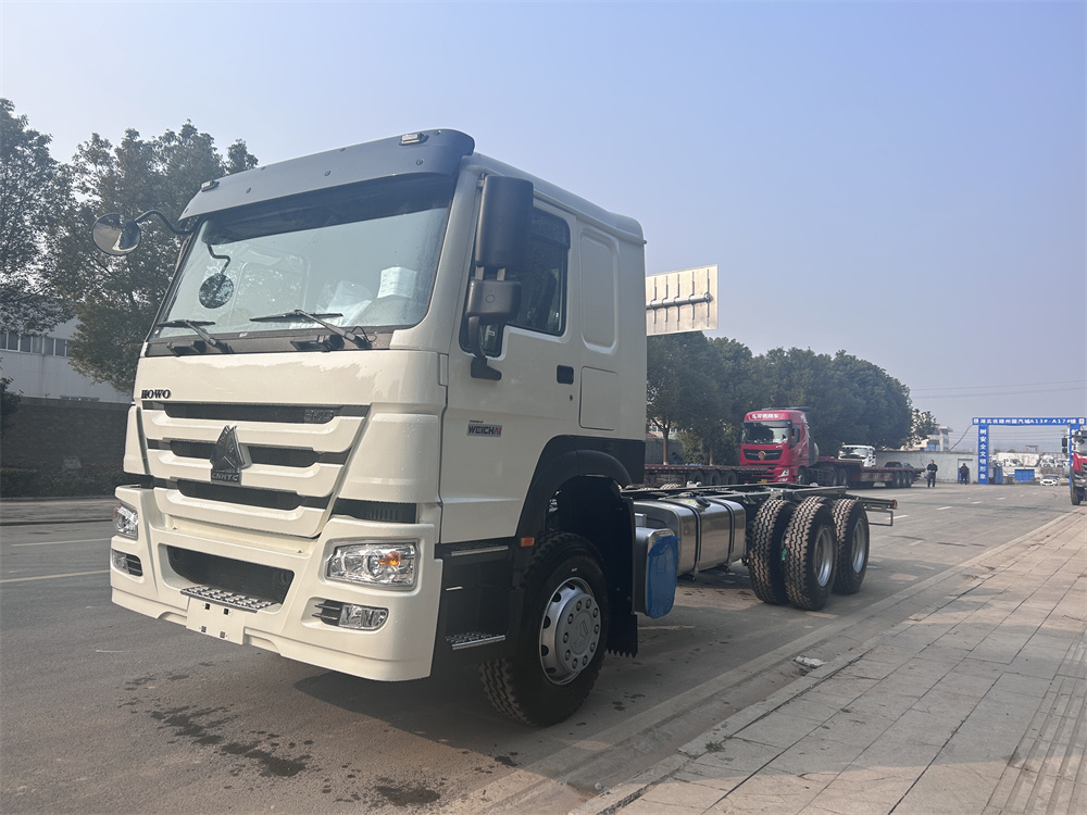 ZZ1257N4647B1R 出口HC16雙后橋(鼓),雙層車(chē)架(8+8/300),前后加強(qiáng)版多片簧(10/12),HW19710變速箱+HW70法蘭式取力器,WP10.340E22發(fā)動(dòng)機(jī),HW76新前臉駕駛室,12.00R20輪胎(混合花紋/18PR),不帶ABS,速比5.73,高位保險(xiǎn)杠(全金屬),右置方向機(jī),VGD95前軸(鼓)